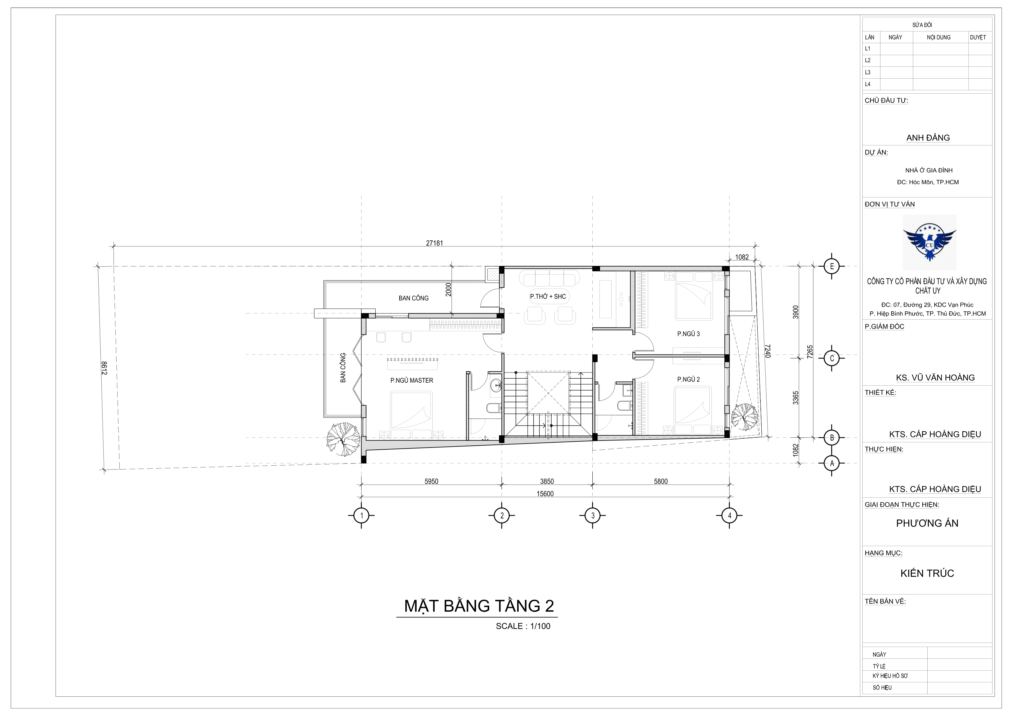 Mặt bằng tầng 2 dành cho không gian của các thành viên trong gia đình với việc thiết kế 3 phòng ngủ, 1 khu vực sinh hoạt chung, phòng thờ và 2 phòng vệ sinh. Ở khu vực tầng 2 được thiết kế 2 lối tiếp cận ra khu vực ban công phía trước nhà để có thể tận hưởng bầu không khí tươi mát và ngắm nhìn toàn cảnh thiên nhiên.